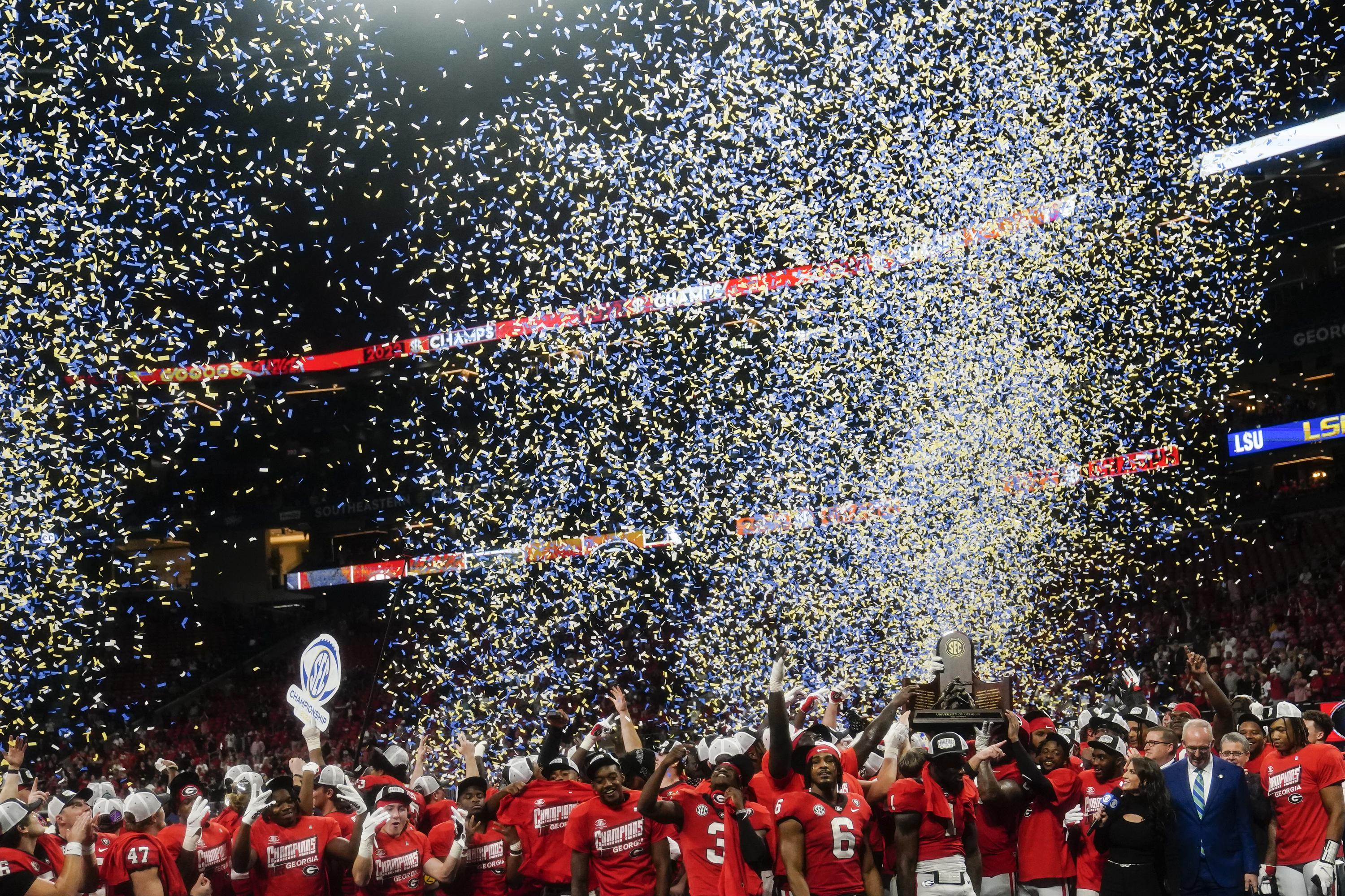 Georgia celebrates a win against LSU in the after the Southeastern Conference championship NCAA college football game, Saturday, Dec. 3, 2022, in Atlanta. (AP Photo/Brynn Anderson)Georgia celebrates a win against LSU in the after the Southeastern Conference championship NCAA college football game, Saturday, Dec. 3, 2022, in Atlanta. (AP Photo/Brynn Anderson)ATLANTA (AP) — Just what the Dr ordered.Two college students each wound up winning $100,000 in tuition Saturday, shortly after boos filled Mercedes-Benz Stadium because of a confusing ending in a halftime contest during the SEC championship game.Fans at the LSU-Georgia game jeered when one of the competitors appeared to capture the Dr Pepper ball toss competition in overtime on a technicality.The two women were tossing footballs with precision into the sponsored Dr Pepper buckets, both opting for the more-accurate chest pass over the traditional football throw. It was clear they had practiced — a lot.And why not, with so much at stake.Baylor student Reagan Whitaker and St. Augustine student Kayla Gibson exchanged leads multiple times in regulation. In overtime, they tied again, but Whitaker, of Allen, Texas, was declared the winner.The winner was set to receive $100,000; the runner-up would get $20,000.ADVERTISEMENTThe fans who skipped their halftime hot dog run to watch were baffled by the conclusion, and they sounded their displeasure.Those viewing at home heard the CBS broadcaster say something about Whitaker winning an earlier tiebreaker. Dr Pepper said in a statement that Whitaker had scored the most points in the preliminary round.It all worked out in the end, though.It was announced on the broadcast in the fourth quarter of the game that Dr Pepper would gift both Whitaker and Gibson, of Fontana, California, with $100,000 in tuition.Top-ranked Georgia beat No. 11 LSU 50-30.___AP college football: https://apnews.com/hub/college-football and https://twitter.com/ap_top25. Sign up for the AP’s college football newsletter: https://tinyurl.com/mrxhe6f2